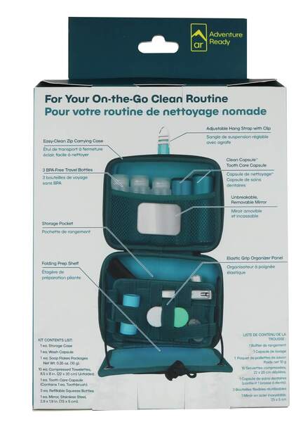 Say hello to your new on-the-go clean routine! The Adventure Ready Adventure Toiletry Kit lets you bring your at-home personal care repertoire into the backcountry. Housed in a durable, washable carrying case, this lightweight toiletry kit comes fully stocked with convenient personal care and dental essentials - not to mention enough extra space to take your medicine cabinet on the road.