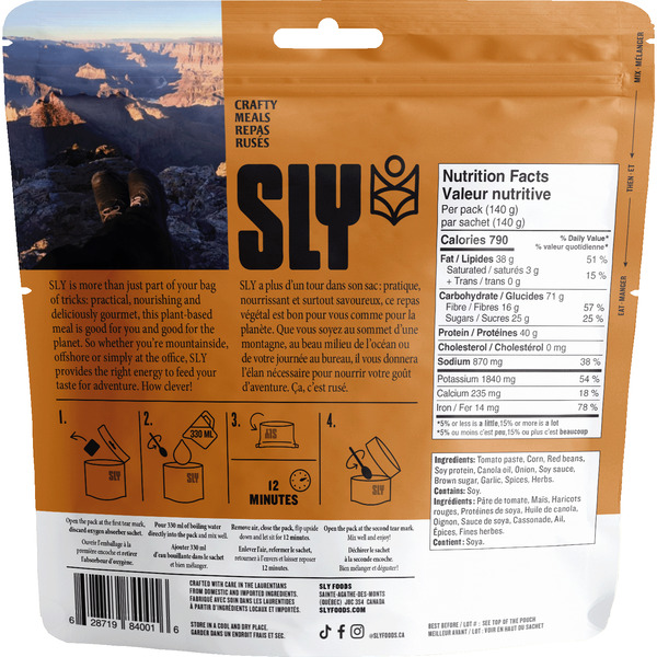 Tomato paste, Corn, Red beans, Soy protein, Canola oil, Onion, Soy sauce, Brown sugar, Garlic, Spices, Herbs.